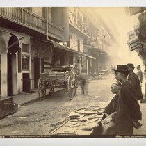The images in this group reflect the daily lives of the Chinese in California during the late 1800s. Some also express the anti-Chinese feeling that resulted in the Chinese Exclusion Act of 1882.