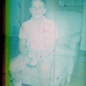 Image / Unidentified young boy seated on an ottoman, drinking a Coke
