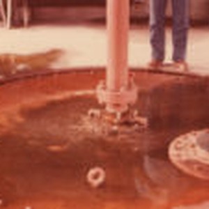 Person standing along a wet circle with pipe running down the middle.