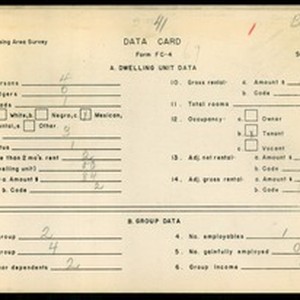Text / WPA Low income housing area survey data card 41, serial 6767