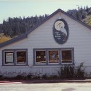 Photo--color: Duncans Mills about 1983. The Blue Heron Inn building and sign.