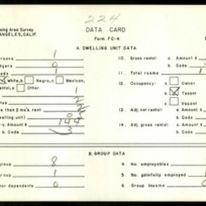 Text / WPA Low income housing area survey data card 224, serial 39037