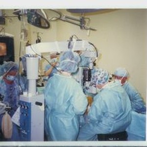 Photo -- color: Surgery in process at Palm Drive Hospital in September, 1985.