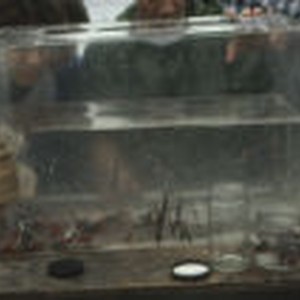 Aquarium full of sea life is examined by students.
