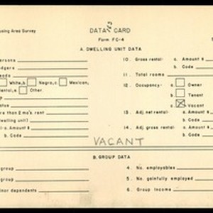 WPA Low income housing area survey data card 163, serial 17806, vacant