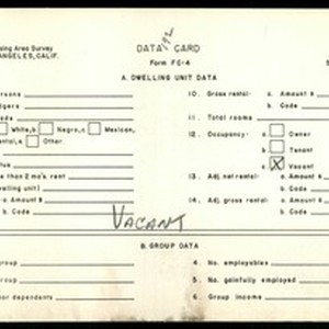 WPA Low income housing area survey data card 192, serial 27568, vacant