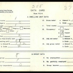 Text / WPA Low income housing area survey data card 255, serial 37855
