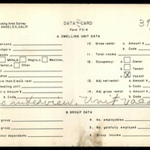 WPA Low income housing area survey data card 191, serial 39205, vacant