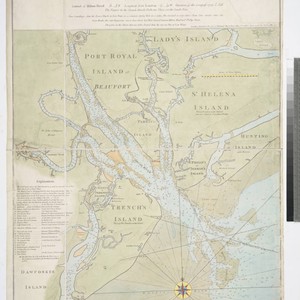 Kashnor notes, "A very rare war map of South Carolina. It shows the different islands, the chief plantations, the soundings of the harbour and rivers, and indicates places of military importance." [Hilton Head Island is named Trench's Island on this map.] See 105:348 for a later version of this map. Sailing directions. Beautifully hand colored.. Prime meridian: London. Relief: no. Graphic Scale: Miles. Projection: Plane. Printing Process: Copper engraving. Verso Text: MS note: 380.