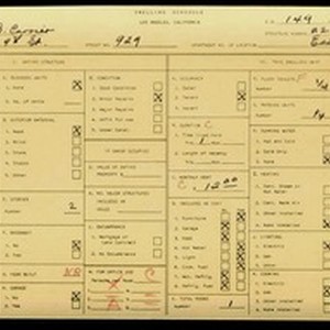 Text / WPA household census for 929 W 9TH, Los Angeles