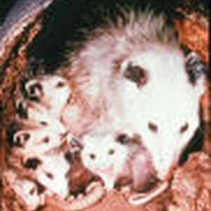 Female opposum with young.
