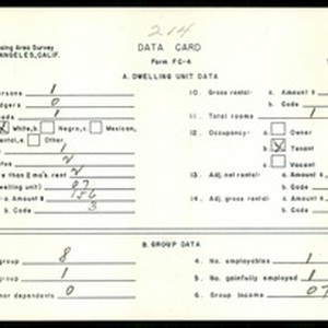 Text / WPA Low income housing area survey data card 214, serial 20061
