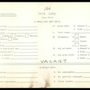 WPA Low income housing area survey data card 166, serial 25261, vacant
