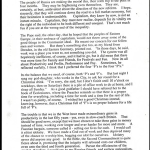 Charles Handy thought for the day on the dangers of making profit and work the sum of one's life, and not allowing for rest, recreation, and God, December 14, 1993; Box 18, Folder 9; 1 page