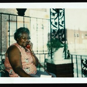 2 photographs including a woman on a telephone, and a man standing beside a truck, [s.d.]. "John Moor[e] Trucking… MO, 824-352…" -- on side of truck. "L81246 4" -- stamped on the back of both. [Description English/roman)]