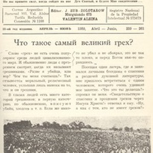 The Christian Herald was an informational organ of the Union of Pentecostal churches of "Assemblies of God" in South America. The journal was founded in August 1937 at the founding meeting of the Slavic Pentecostal churches of South America. Believers from Argentina, Paraguay, Uruguay and Brazil were present at the meeting. The purpose of the journal was to "carry unity and communication of the Spirit to the midst of believers in full Gospel". The journal united Pentecostal churches and became a link which connected believers scattered all over the world. Thus, letters of Christians of Evangelical faith from Germany, Belgium, France, the Netherlands, Canada, the United States, Uruguay, Paraguay, the Philippines, China, Australia and other countries were published in the journal journal. The first issue was published in Russia in October 1937. Subsequently, the journal spread to 40 countries where the Slavic diaspora lived. The headquarters of the journal was located in Buenos Aires. Juan Zub-Zolotarow was responsible for the journal. He was a permanent editor for 42 years. The journal was published for offerings of believers. Spiritually-edifying and theological articles of Donald Gee, Alfred Goets, R. Bratslavsky, N. Vodnevsky, D. Bespalov were published in the journal. On the last pages, as a rule, information from local churches and the mission and evangelical fields of North and South America, Canada, Africa, Australia, India, Europe and China was published. Thus the activity of such evangelists as Oral Roberts, Billy Graham, T. Giks, and William Brankham was reported in detail. [Description English/roman)] Христианский Вестник -- информационный орган Союза Пятидесятнических церквей «Собраний Божиих» Южной Америке. Журнал был основан в августе 1937 года на учредительном собрании славянских пятидесятнических церквей Южной Америки. На этом съезде присутствовали верующие с Аргентины, Парагвая, Уругвая и Бразилии. Цель журнала: «Нести единство и общение духа между верующими в полное Евангелие». Журнал объединил вокруг себя пятидесятнические церкви и стал как-бы связующим звеном между верующими, рассеянными по всему миру, публикуя письма христиан веры евангельской-славян из Германии, Бельгии, Франции, Голландии, Канады, Соединенных Штатов, Уругвая, Парагвая, Филиппин, Китая, Австралии и других стран. Первый номер журнала, издававшегося на русском языке, вышел в октябре 1937 года. Впоследствии журнал распространялся более чем в 40 странах, где проживала славянская диаспора. Штаб квартира журнала находилась в Буэнос-Айресе. Ответственным за журнал был назначен И.Зуб-Золоторев, который и был бессменным редактором на протяжении 42-х лет. Издавался журнал на добровольные пожертвования верующих. В журнале печатались духовно-назидательные и богословские статьи Дональда Джи, Альфреда Гоетца, Р.Брацлавского, Н.Водневского, Д.Беспалова. На последних страницах, как правило, публиковались информационные сообщения от поместных церквей и евангелизационных и миссионерских полей Северной и Южной Америки, Канады, Африки, Австралии, Индии, Европы и Китая. Так освещалась подробно деятельность евангелистов: Орала Робертса, Билли Грэма, Т.Гикса, Уилльяма Бранхама. [Description (original non-English/roman language/script)]