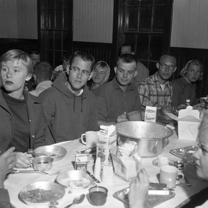 Students having a meal in the dining hall