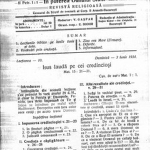 Apostolic Faith - In the Power of Holy Spirit is the periodical publication of the penticostal group named "Apostolic Pentecostal Church of God - Christian Baptized in the Holy Spirit" from Romania between 1932 & 1934. [Description English/roman)] Credinţa Apostolică - În puterea Duhului Sfânt este publicatia periodica a grupului penticostal cunoscut sub denumirea "Biserica lui Dumnezeu Apostolică Penticostală - Creştini Botezaţi cu Duhul Sfânt" din Romania intre anii 1932-1934. [Description (original non-English/roman language/script)]