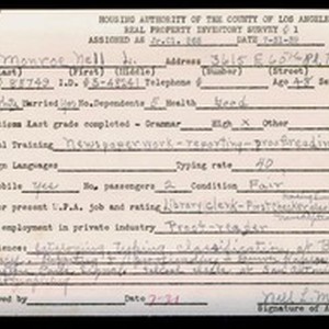Text / WPA household census employee document for Nell L. Monroe, Los Angeles