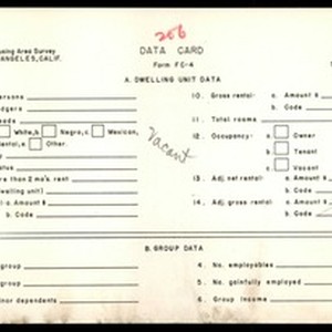 WPA Low income housing area survey data card 206, serial 37351, vacant