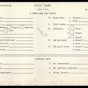WPA Low income housing area survey data card 124, serial 21821, vacant