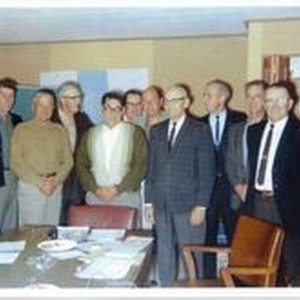 Photo, color: The Board of Directors of SAGU (Sebastopol Apple Growers Union) June, 1967 inside office. Left to right: Bill Starkey, Tony Bondi, Larry Duffield, Bill Overstreet, Ross, George Trefcer, Joe Perry, Bill Marshall, Louis de Martini, Ivan Roberts. Missing member--Ezra Briggs.