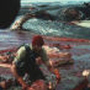 One lobe of a whale's lung lying on the beach. Mike Graybill is pointing to the trachea.