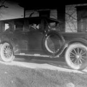 Photo--black and white, from Borba 8" x 10" celluloid negative: Vintage car, about 1920s with unidentified passengers.