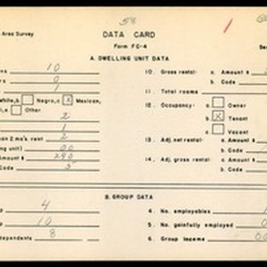 WPA Low income housing area survey data card 58, serial 14580
