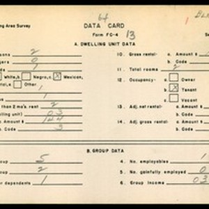 WPA Low income housing area survey data card 64, serial 15448