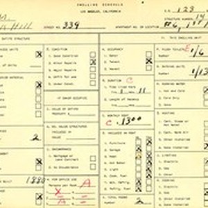 Text / WPA household census for 339 S BUNKER HILL, Los Angeles