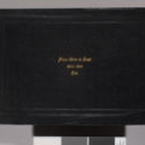 Bound in textured black material. The title, "From West to East 1900-1901 Etc." is embossed on cover in gold. Partial number is affixed to the top of spine in glue. Photos and postcards from Charmian London's trip across the country before her marriage to Jack London. Very light wear on surface and at outer corners. Only the remains of the top of the number "3" are left on the top of spine that presumably read, "31."