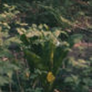 A bush of leaves with thick tall stems behind Richard's cabin at Mount Hood.