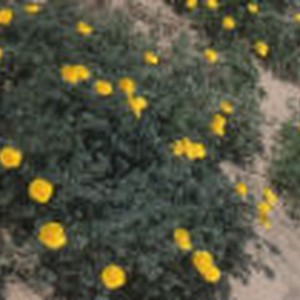 California poppies flourishing in the sand.