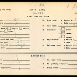 WPA Low income housing area survey data card 52, serial 9372