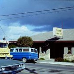 Slide, color transparency: The historic Petaluma & Santa Rosa Railway depot in use as Clarmark Flower Shop at 261 South Main in Sebastopol.
