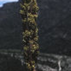 A close up of the fruit on a green sotol stalk growing in Slaughter Canyon.