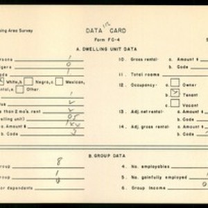WPA Low income housing area survey data card 152, serial 27580