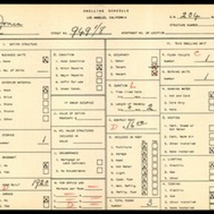 WPA Household Census cards and employee records, Los Angeles, 1939