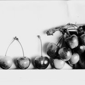 'Photo--black and white: Identification of Luther Burbank cherry hybrid from the Gold Ridge Experiment Farm. Cherry clusters Identified on back as "1909 Fine" John Ross Photographer