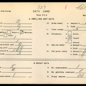 WPA Low income housing area survey data card 127, serial 8952