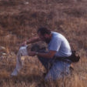 An instructor moving a wild rabbit from a National Trap into a sock.