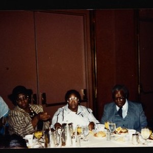2 photographs including 4 unidentified women and 2 unidentified men seated at a banquet table another unidentified woman is standing, [s.d.]. [Description English/roman)]
