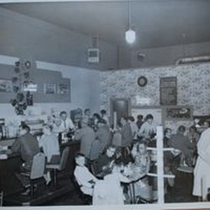 Photo--black and white: Sebastopol Lions Club scrapbook photo: Lions Club Pancake Day at Johnny and Anne's Restaurant circa 1955. Behind the counter: O. E. (Dick) Dickenson, Edgar Herring and Leslie Offutt.