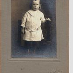 Photo--sepia, studio matted: Photo portrait of Lester Sharp age three years take on July 7, 1915. Lester was the son of Mr. & Mrs. Earl Sharp and was born in 1912. Clench Studio, Sebastopol