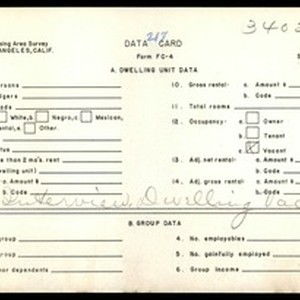 WPA Low income housing area survey data card 217, serial 34024, vacant