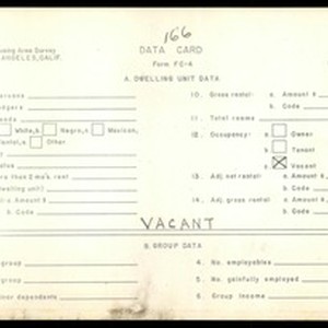Text / WPA Low income housing area survey data card 166, serial 31070, vacant