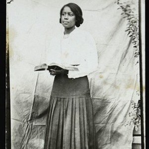 Photograph postcard of an unidentified woman, [s.d.]. "post card, Noko, place stamp here, ...er & father" -- printed and written on back. [Description English/roman)]