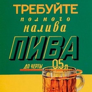 A poster dedicated to consumer rights. Caption reads, "Trebuite polnogo naliva piva do cherty 0,5 l / Требуйте полного налива пива до черты 0,5 л", meaning, "Insist on your glass being filled up with beer fully right up to the 0.5 liter mark". [Description English/roman)]