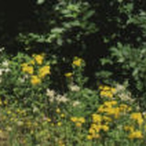 Yellow flowers on the roadside at Libby, Oregon. Slide mount references Tansy Ragwort.